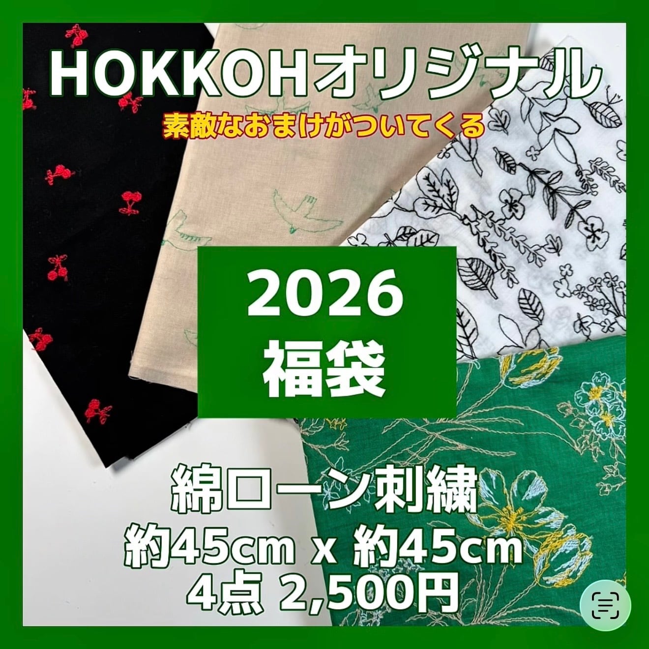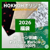 2026年福袋 60綿ローン刺繍 カットクロス 約45cm x約45cm 4点+おまけ