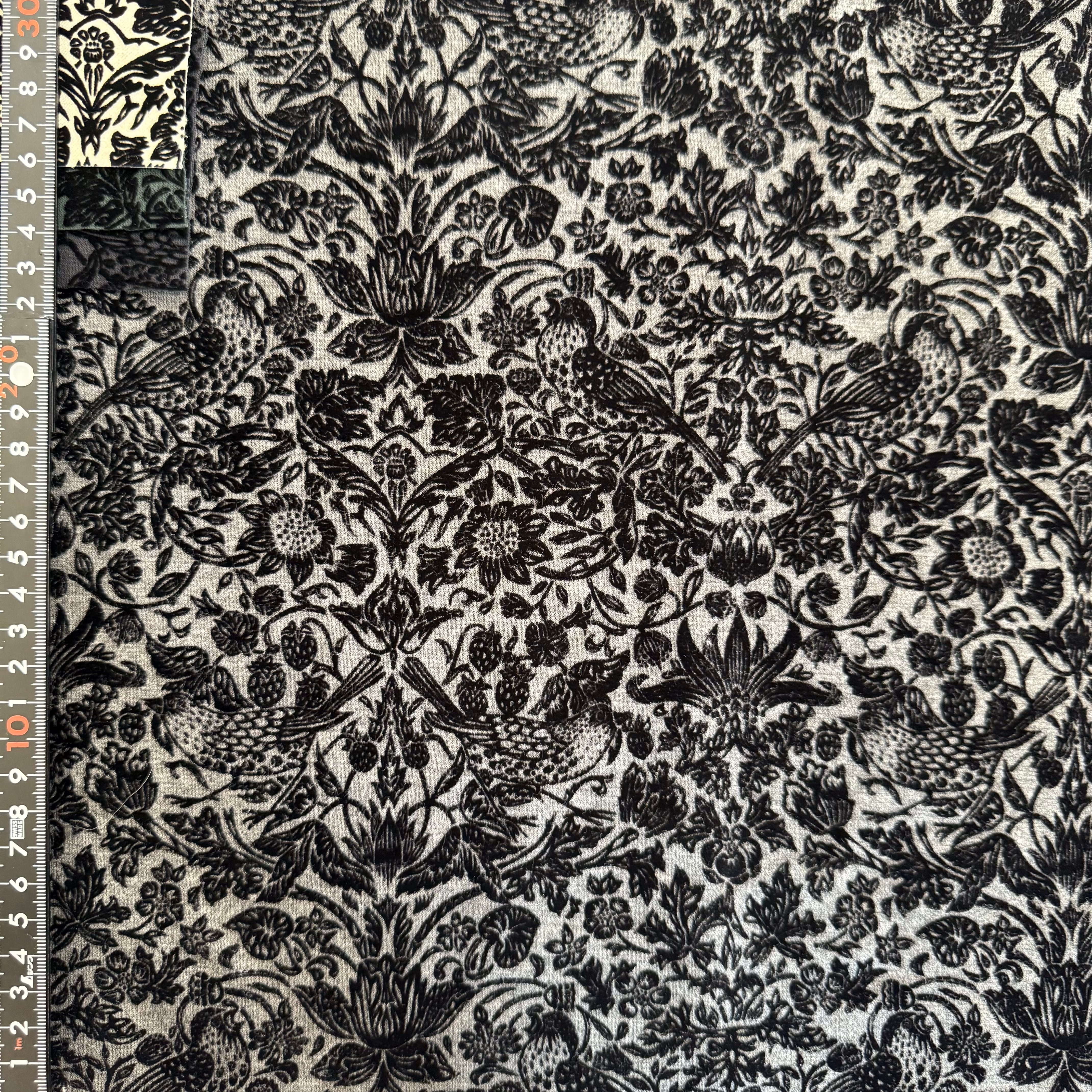 英国の思想家、詩人、デザイナー、作家、画家でデザイン史上に多大なる影響を与えた、ウィリアム・モリス。イチゴ泥棒という名前のこのデザインは、モリス自身がイチゴを育てようとしたときに、鳥に食べられてしまった経験からインスピレーションを得て1883年に制作されました。1979年、リバティ社が調度品のファブリックとしてプリントし、その後タナローン用に柄を縮小しデザインを調整。1995年リバティ社のクラシックコレクションに加入し、今でも不動の人気を誇っています。このストロベリー・メドウは拡大版になります。